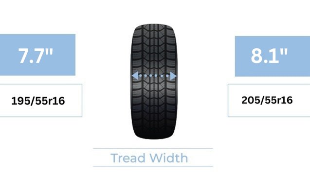 How Much Wider is a 205/55r16 Tire Than a 195/55r16?