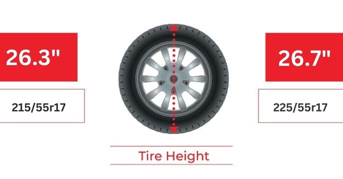 How Much Taller Is A 225/55r17 Tire Than A 215/55r17?